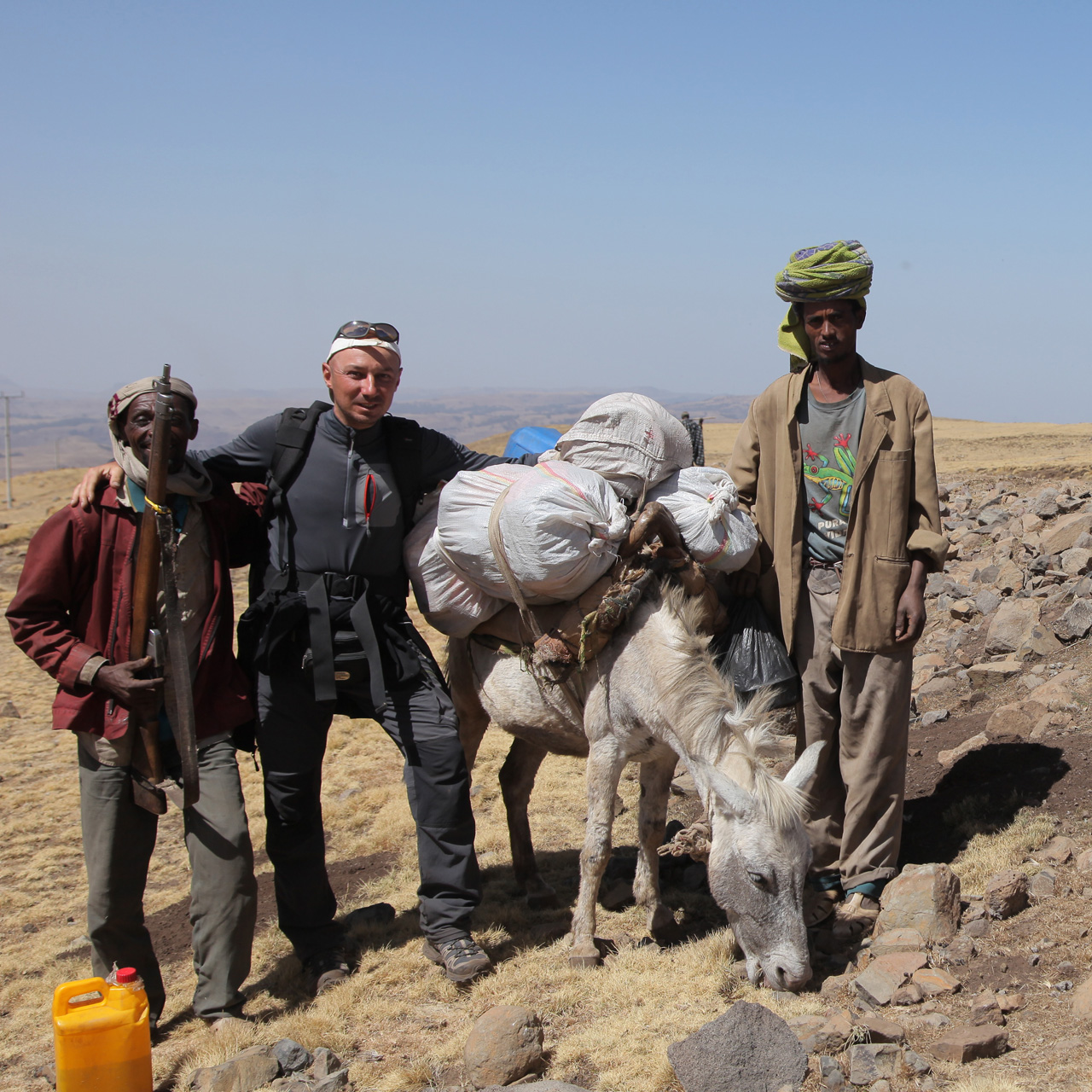 A week in the Simien Park by mule, mule tracks and scout (armed guide), in search of the Gelada Baboon.